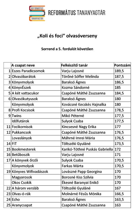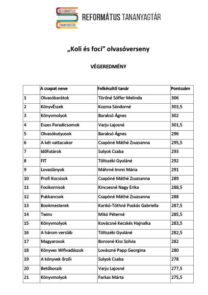 Koli és Foci címmel hirdetett olvasópályázatot tavaly ősszel a Református Tananyagfejlesztő Csoport a református iskolák ötödikes és hatodikos diákjainak. Nyolc hónap alatt 382 diák küldött válaszokat a regények alapján készült kreatív feladatokra. A legjobb 30 diák és kísérőtanárának jutalma egy négynapos olvasótábori részvétel a nőtincsi Seholsziget élményparkba. Nyolc havi olvasást és rejtvényfejtést követően ünnepre készülődtek a református általános iskolák diákjai a budapesti Duna Palota színháztermében. Volt, aki a Balaton mellől, Észak-, vagy Kelet-Magyarországról, vagy éppen a déli határ közeléből utazott a fővárosba június 8-án, hogy megtudja, hogyan szerepelt csapata a Koli és foci olvasópályázaton.